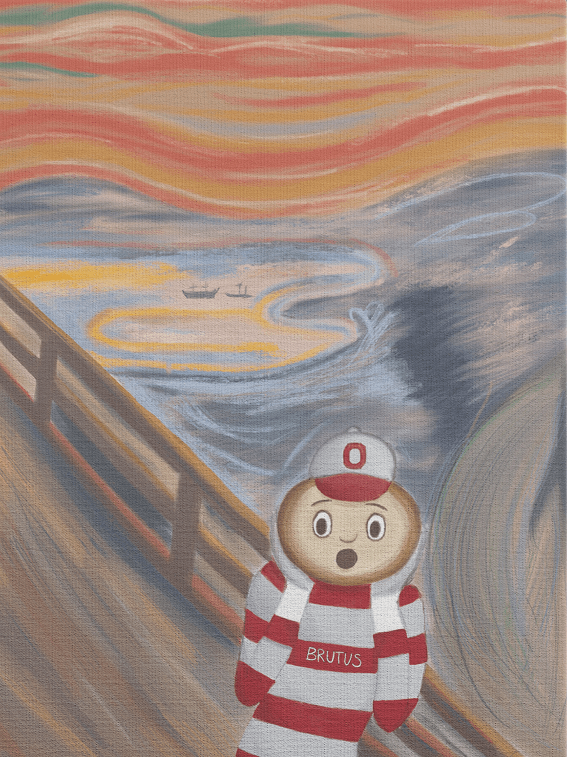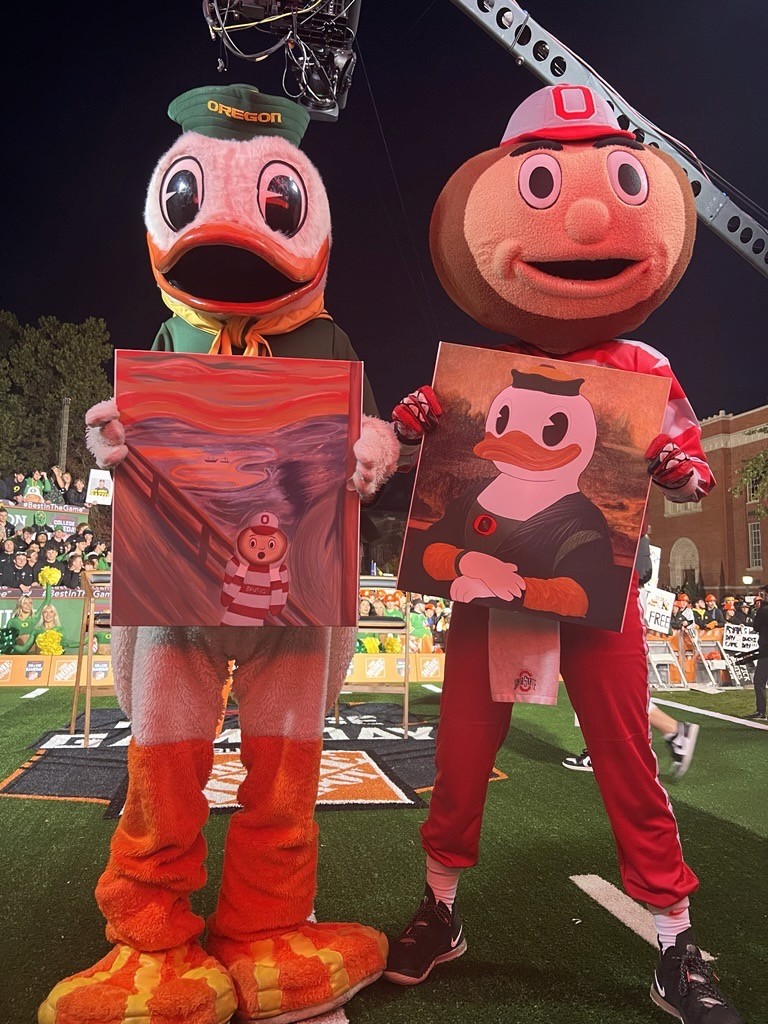 As College GameDay approached for one of our biggest games: Ohio State University vs. University of Oregon, I was recommended by my co-worker to work with ESPN to create paintings for GameDay. Given that I had a 24-hour notice to complete a painting of Brutus, the Ohio Mascot as “The Scream”, I am proud of how it came out! This was my very first digital art piece and was broadcast live on TV.