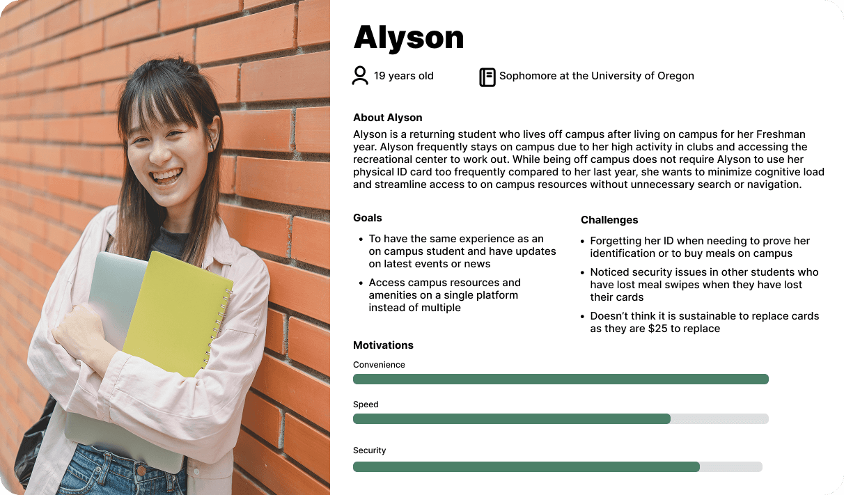 I interviewed 4 University of Oregon students and 1 University of Oregon employee to gain further insight into using a physical ID card.